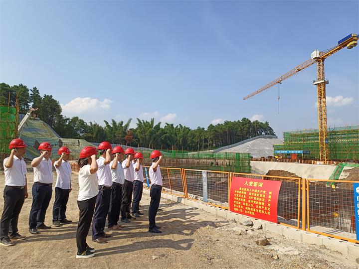 “我志愿加入中國共產(chǎn)黨,擁護(hù)黨的綱領(lǐng),遵守黨的章程,履行黨員義務(wù),執(zhí)行黨的決定……”項(xiàng)目建設(shè)施工現(xiàn)場(chǎng),黨員們面對(duì)莊嚴(yán)的黨旗,重溫了入黨誓詞。