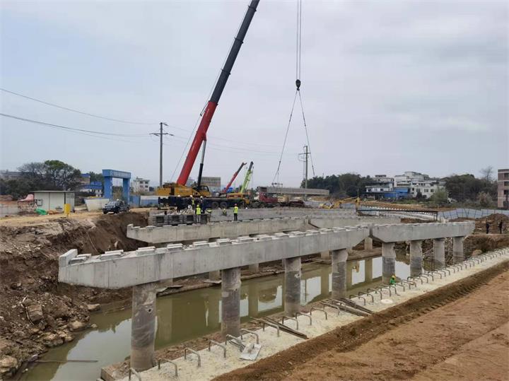 生態(tài)新城永康路育才河橋開(kāi)展架梁施工2022-03-10